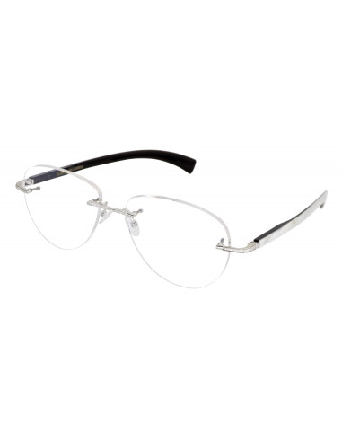 A 18K Solid White Gold frame of about 8,5 grams. Our Eyepiece is set by 24 White Brilliant Cut Diamonds, for a weight of 0,25 carat. Its spatula temples are composed of dark marbled genuine horn inside and white marbled genuine horn outside. BOURGEOISE 01.D.11.02.CMD53 is the reference of its gold plated version.