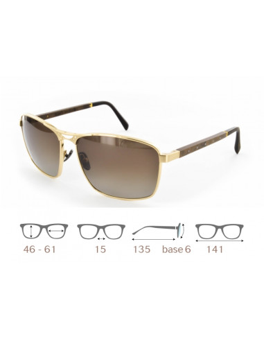 Champagne gold / dark walnut burl / brown tanganyika - Endtips : Brushed black acetate - Lenses : Brown gradient - polarized silver flash